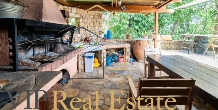 Ισόγειο: Ευρύχωρος ενιαίος χώρος σαλοτραπεζαρίας με νορβηγικό τζάκι, ανεξάρτητη κουζίνα με αποθήκη τροφίμων, δύο υπνοδωμάτια, ένα μπάνιο και επιπλέον ανεξάρτητος χώρος με δική του είσοδο, ιδανικός για γραφείο.