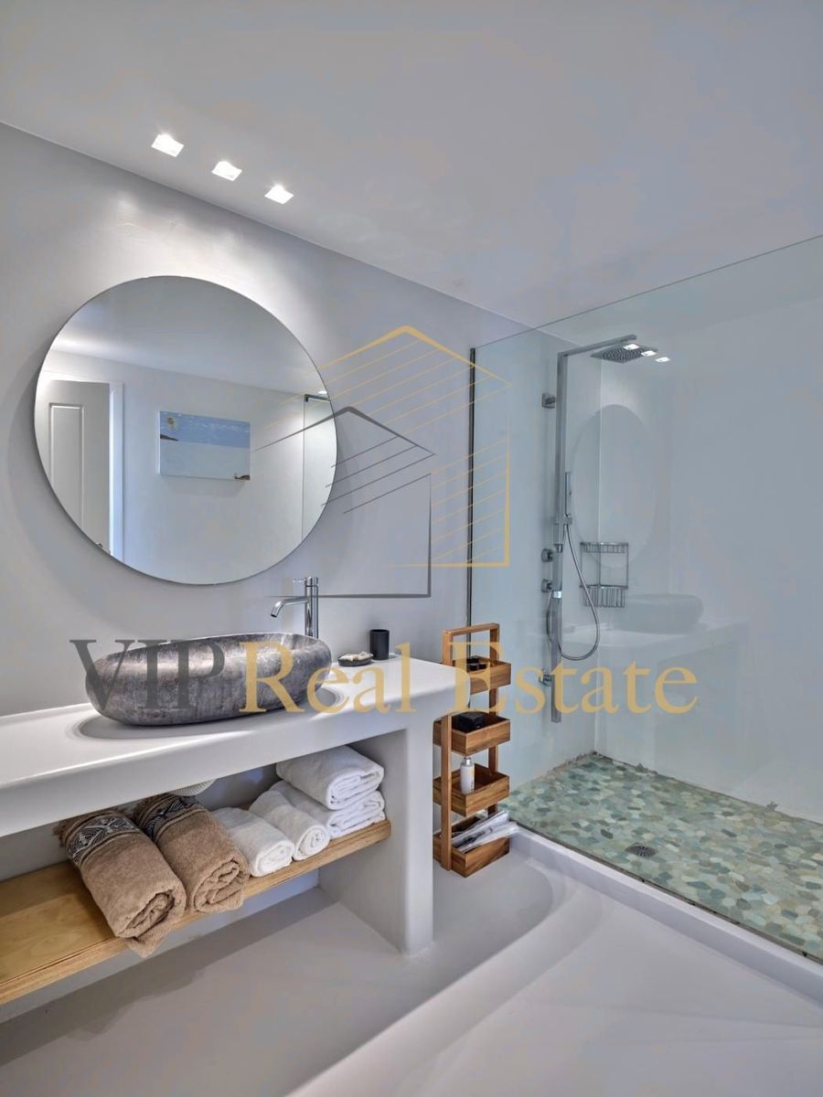 Ένα καταφύγιο κομψότητας και πολυτέλειας, αυτή η πολυτελής έπαυλη είναι ένα εκλεπτυσμένο καταφύγιο πάνω από την παραλία Santa Maria. Προσφέροντας μαγευτική θέα στο Αιγαίο, απόλυτη ιδιωτικότητα και απαράμιλλη πολυτέλεια, αυτό το εκπληκτικό ακίνητο έχει σχεδιαστεί για όσους εκτιμούν την απόλυτη άνεση στην παραθαλάσσια διαβίωση.
