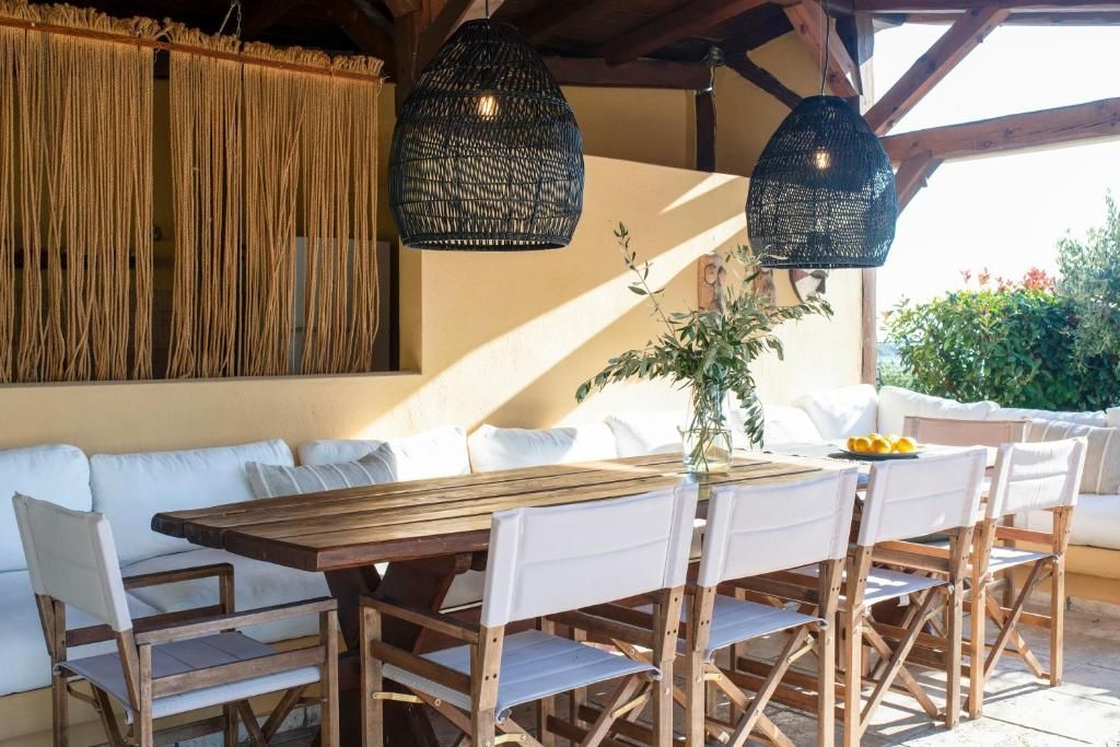 Η κατοικία πλαισιώνεται από έναν προσεγμένο κήπο με μεγάλη πισίνα, εξωτερικό τζακούζι, κιόσκι με πλήρως εξοπλισμένη κουζίνα και BBQ, τραπεζαρία εξωτερικού χώρου, παιδική χαρά και γήπεδο τένις.